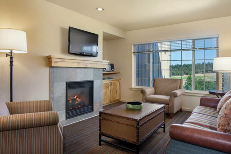 Nestled in Oregon's captivating landscape, WorldMark Running Y is where luxury and nature converge. Each meticulously crafted room ensures optimum comfort, outfitted with modern amenities and panoramic vistas. The resort boasts an array of facilities: an inviting indoor pool, a fitness centre, an on-site spa, and a pristine golf course for enthusiasts. For those keen on a cosy evening, the resort features barbecue grills and rooms with ambient fireplaces. Diverse dining options cater to every palate, while tennis courts, a children's playground, and event spaces amplify the offerings. At WorldMark Running Y, experience a rich tapestry of amenities amidst Oregon's breathtaking beauty.