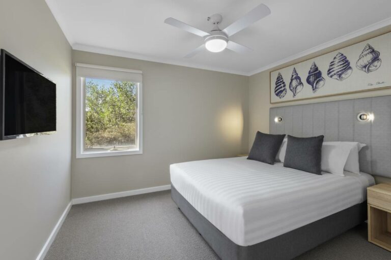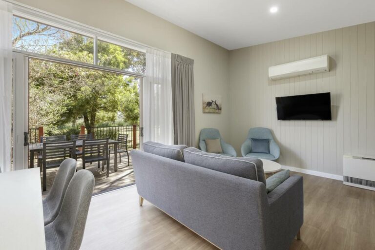 Ramada Phillip Island, located centrally and just a two-hour drive from Melbourne, is set across 65 acres of stunning countryside and enveloped by natural bushland. The resort boasts impressive facilities like a café and bar, an outdoor pool, a health centre with gym and spa, tennis courts, and picnic barbecue areas, amidst a backdrop of native gardens and seven kilometres of walking and cycling tracks. With accommodation options from studios to three-bedroom cottages, all featuring full kitchens and outdoor decks, the resort provides a tranquil yet active getaway for couples and families, whether indulging in Phillip Island's attractions or savouring leisurely pursuits.